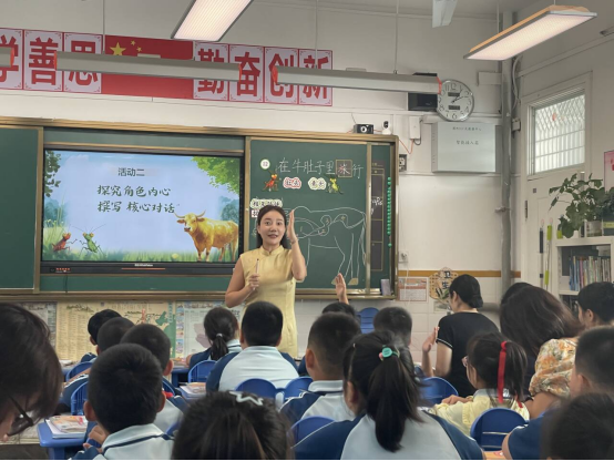 10月10日,张程程老师在三(4)班执教了《在牛肚子里旅行》一课。课堂以“线路图” 复习导入,延续故事出版任务,引导学生掌握 “先…… 然后……” 等连贯表达词汇。随后组织学生分组分析课文角色,寻找体现角色友情的文本证据,并通过分角色朗读、重点段落品读,体会故事惊险感与角色情感。接着围绕故事出版,引导学生借助旅行路线梳理故事主线,还以“现场目击者” 视角发起创意构思,鼓励自由畅想拓展故事内容。最后提供关键词助力学生创编童话故事,并推荐相关课外读物。