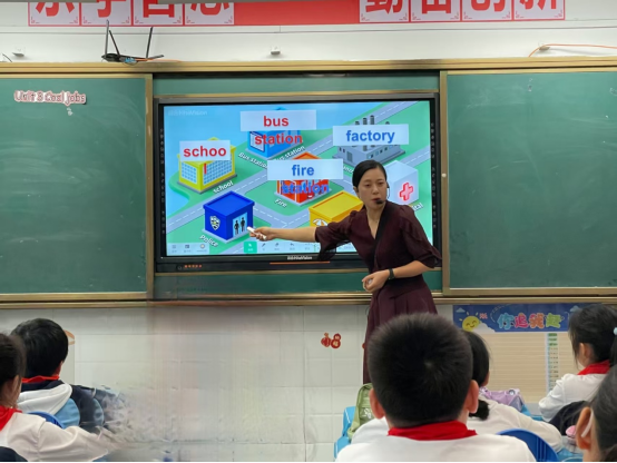 10月15日下午,应胜男老师在四(3)班围绕“Cool Jobs”上了一场别开生面的英语公开课。应老师通过歌曲导入,借助“People in my town”视频营造职业探索情境;再以地图场景互动、职业字谜挑战等活动,强化学生对职业词汇、工作场所的认知;最后进行了职业角色采访活动,推动学生语言输出。