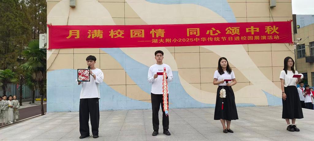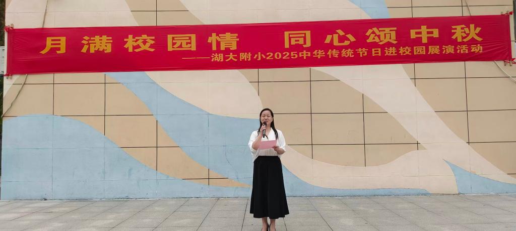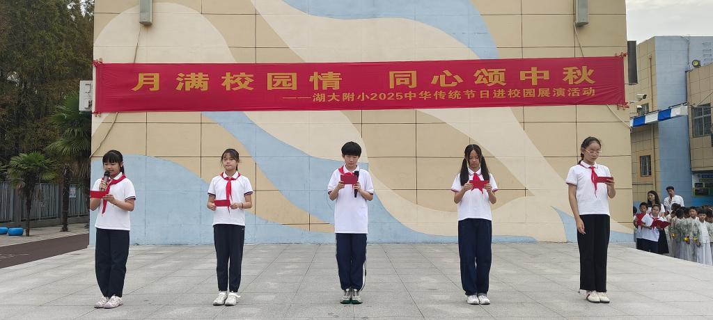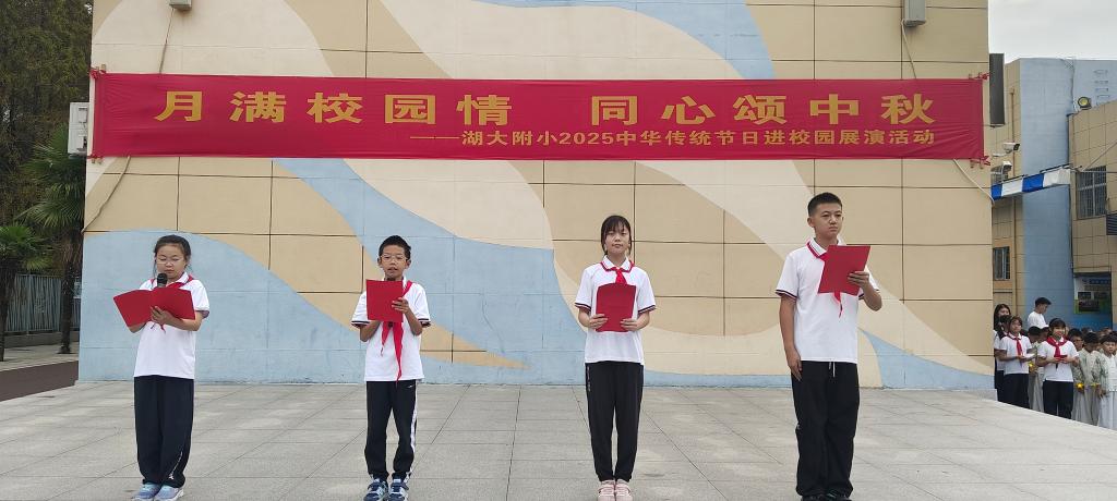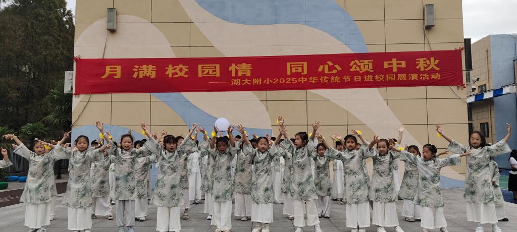 秋意渐浓,桂香满园。2025年9月30日上午,湖大附小大操场上欢声笑语,暖意融融,“月满校园情,同心颂中秋”中华传统节日进校园展演活动在此温情上演。全校师生齐聚一堂,共迎中秋佳节,传递团圆温情,弘扬传统文化。