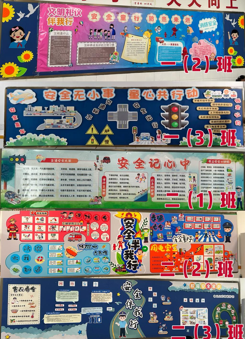 活动启动后,各班级师生齐心协力、分工协作,围绕交通安全、消防安全、防溺水安全、食品安全、防踩踏、防校园欺凌等核心主题,展开创意构思。同学们查阅安全资料、设计版面布局、绘制卡通插画、书写安全标语,将严肃的安全知识与童趣化的表达相结合。让班级软包成为可看、可学、可记的安全知识库。
