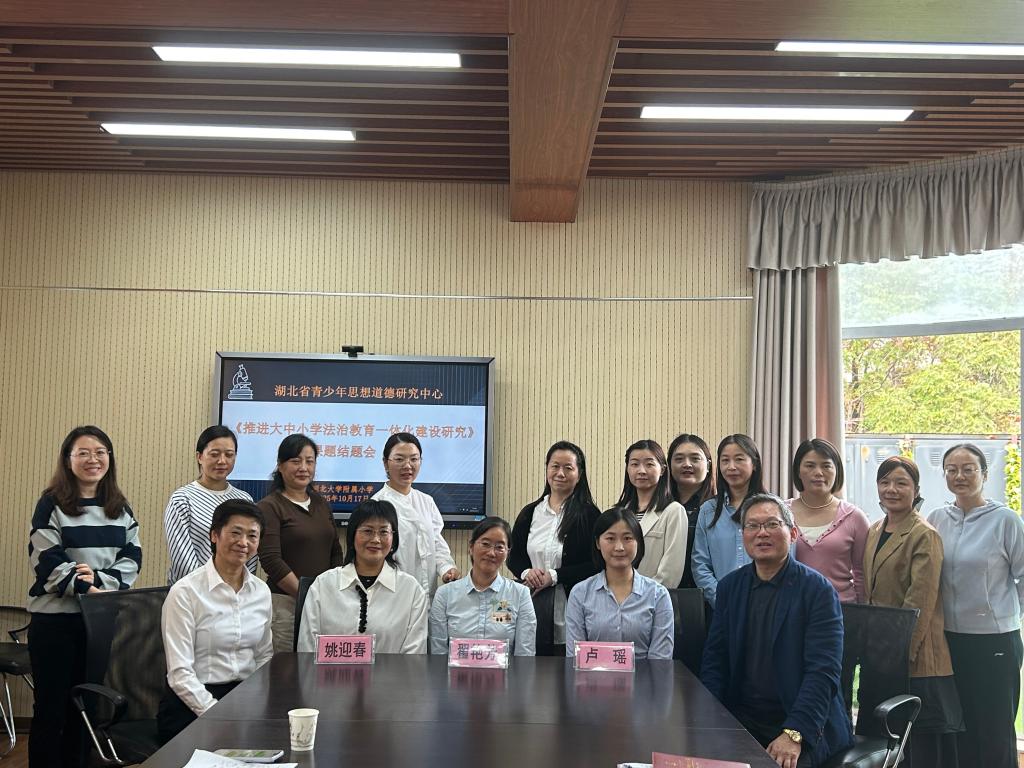 2025年10月17日,“推进大中小学法治教育一体化建设研究”课题结题论证会在湖北大学附属小学举行。本次会议特邀湖北大学政法学院专家、课题主持单位负责人及课题组全体成员共同参会,围绕课题研究成果展开深入研讨与鉴定。