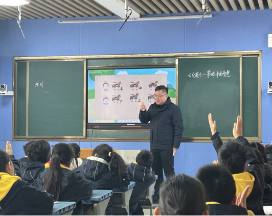 汉川实验小学吴波校长以“游戏启趣—故事建模—规则变式—文化浸润”为主线,构建“生活联结—历史溯源—动态探究”的教学场域,带领学生以玩入境、以模析理、以变拓思。课堂上,他组织学生开展信息提取、策略枚举、跨场景迁移等活动,并运用AI模拟、生活化素材转化等手段,使学生快速捕捉马匹等级、对阵规则等数学信息,展现出扎实的有序思维与逻辑推演能力,以“生活—历史 — 动态”的多维探究路径,推动数学思维在跨场景中灵活流动、深度生长。
